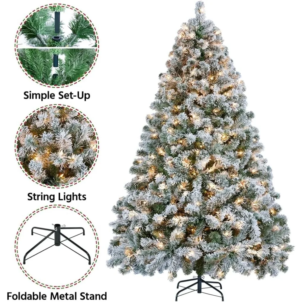 6ft Pre-lit Artificial Christmas Tree with Incandescent Warm White Lights, Snow Flocked Full Prelighted Xmas Tree
